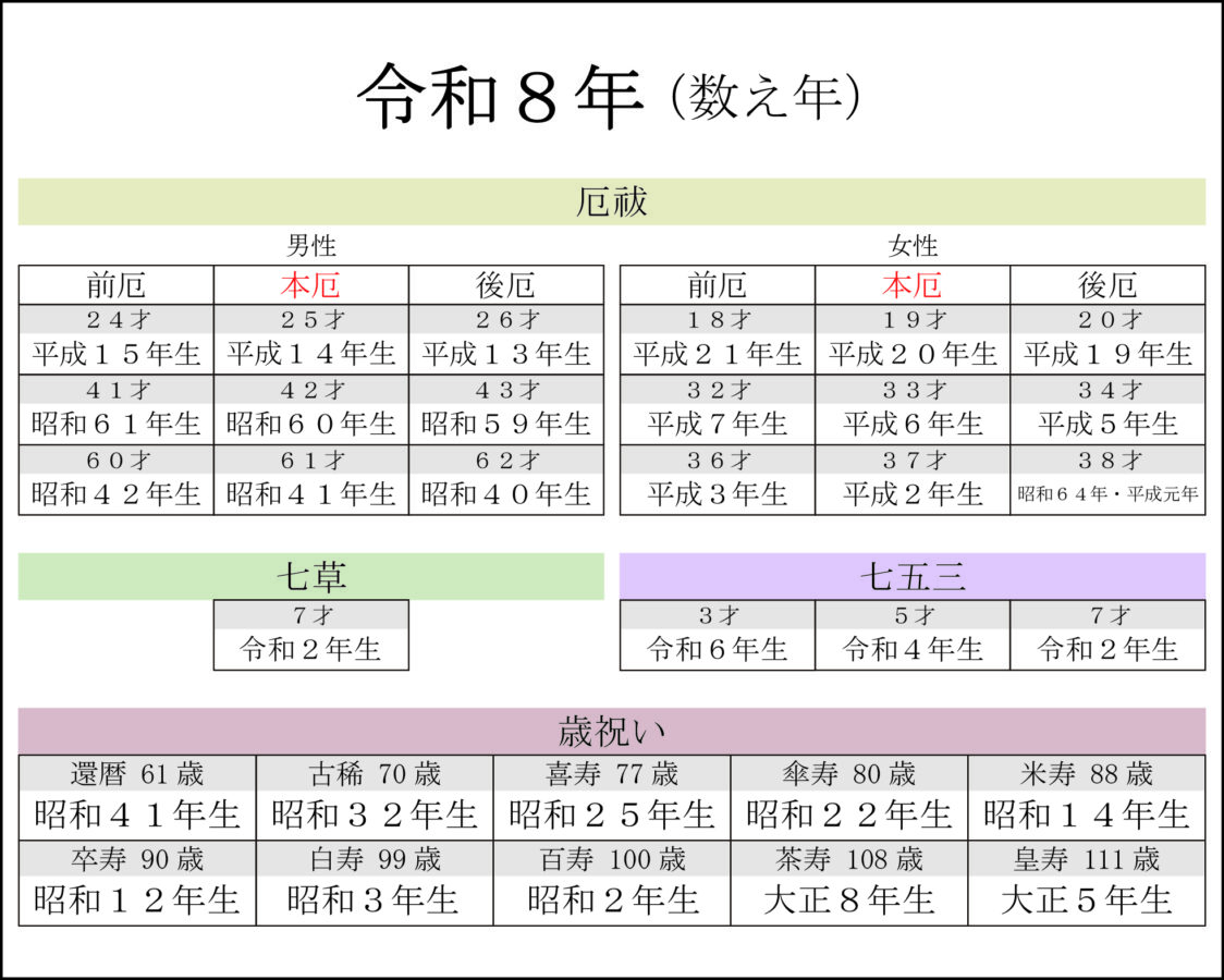 令和8年 早見表